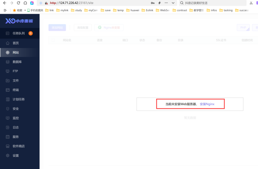 网站由于没有 Nginx 无法访问