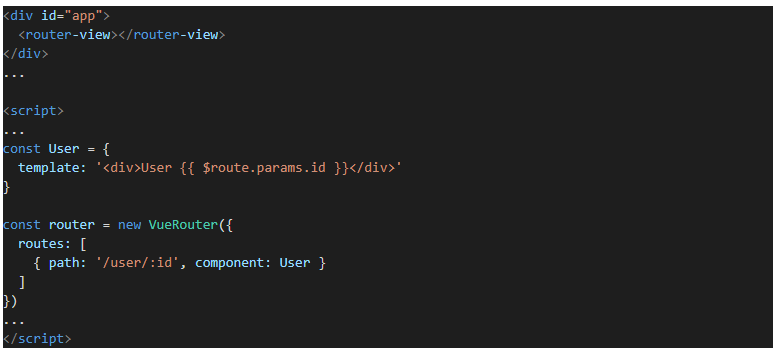 - 允许用户组件使用$route对象的params键输入用户的特定ID:$route.params.id。