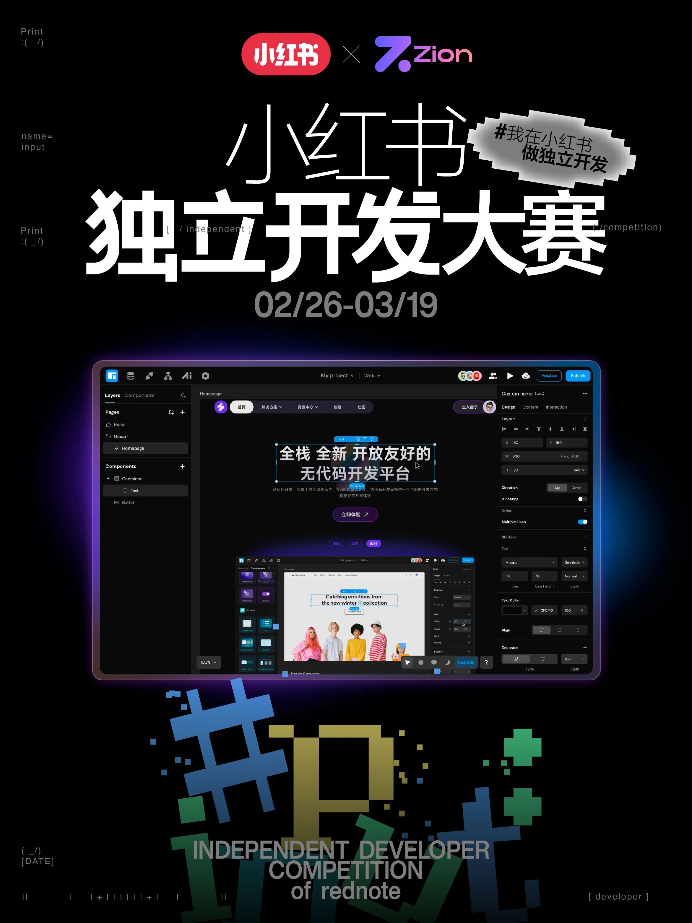 小红书 × Zion无代码:蹲一个独立还特行的开发者!