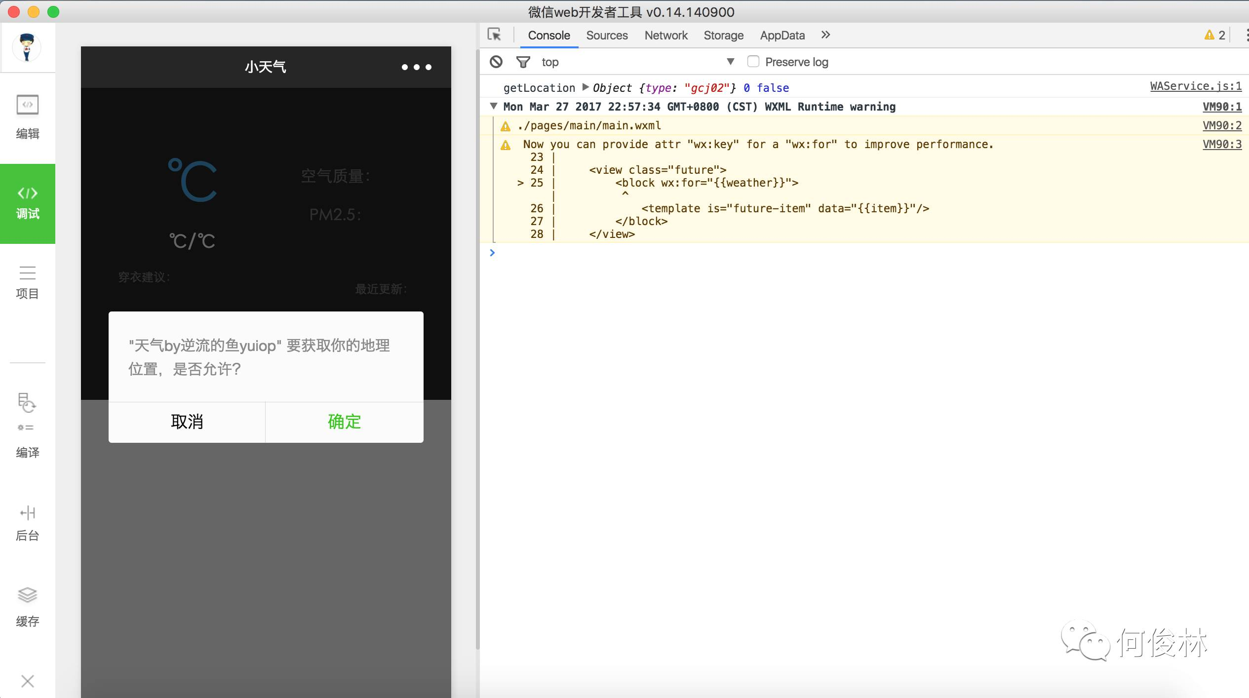 写死定位是”海淀区“,百度天气api,须要申请ak,这里在网上找了个ak