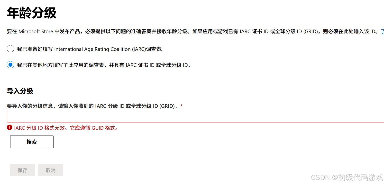 如果已经在别的地方填过,可以选“我已在其他地方填写了此应用的调查表,并具有 IARC 证书 ID 或全球分级 ID。” :
