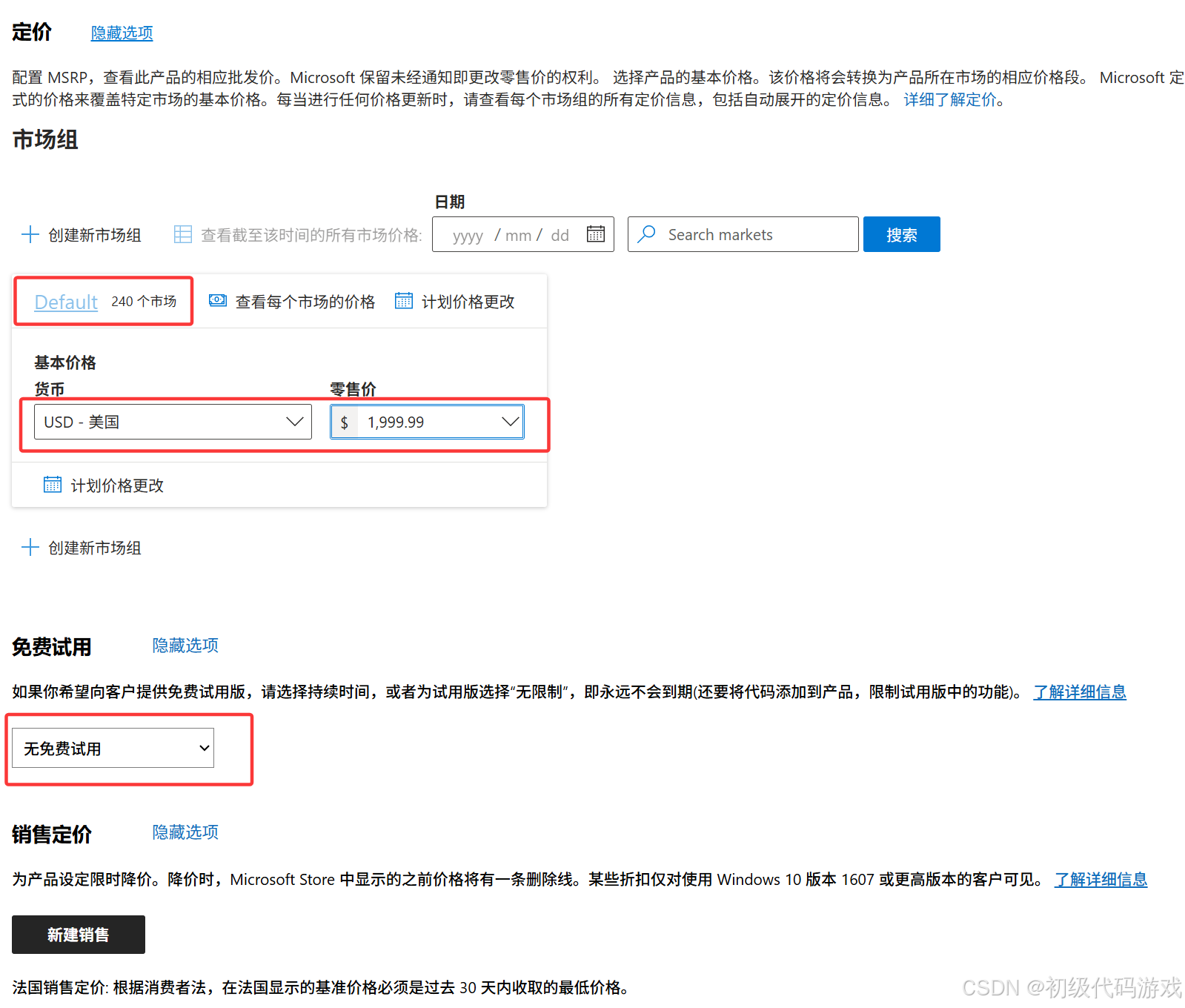 注意,如果选择了收费,就必须首先设置税务和收款账号才能提交上架。