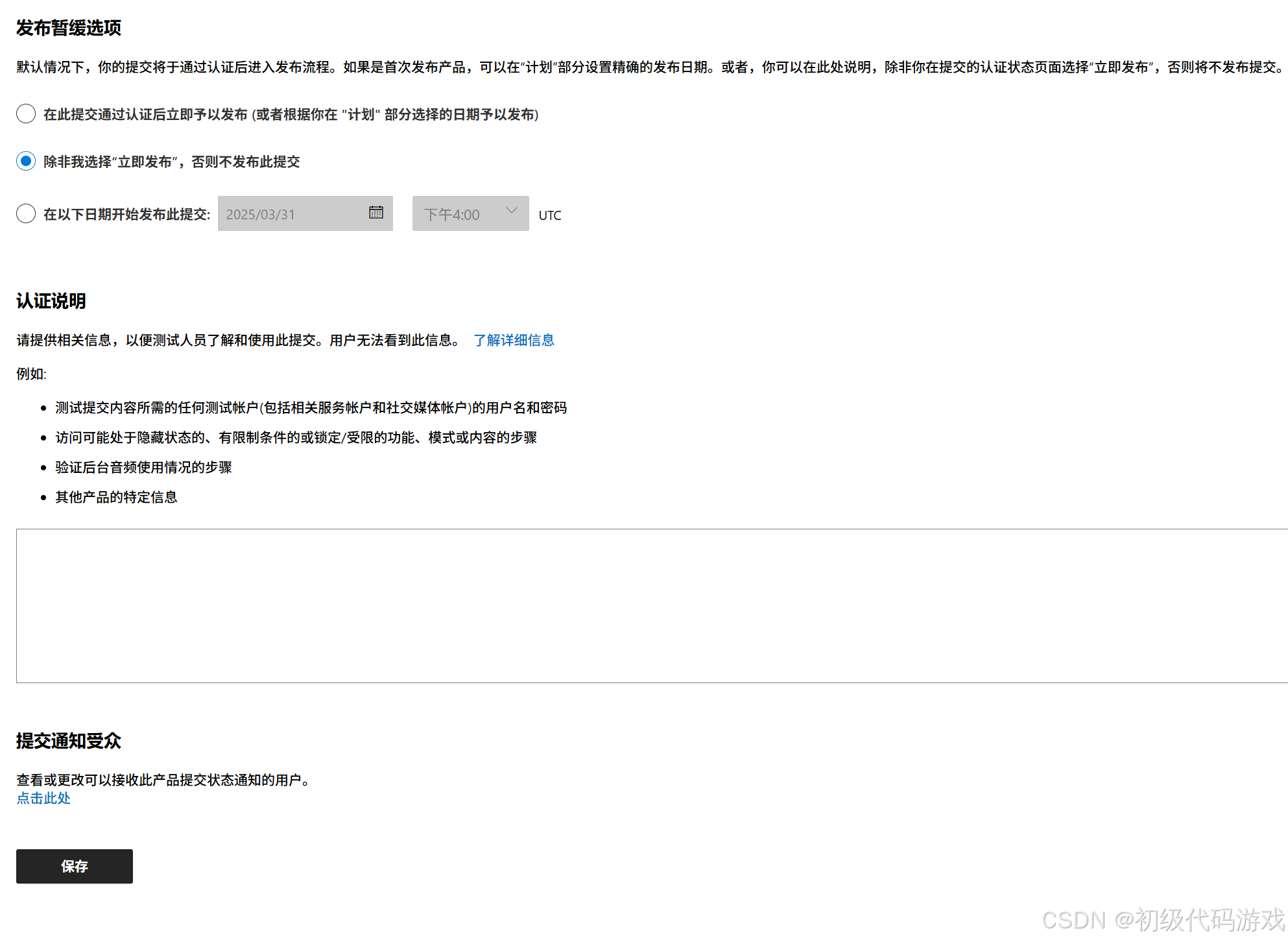 如果前面的设置都完成了,就可以提交到商店,因为我前面选择的是“除非我选择“立即发布”,否则不发布此提交”,因此当我设置完成后出现了一个“立即提交”按钮,点一下就可以了。