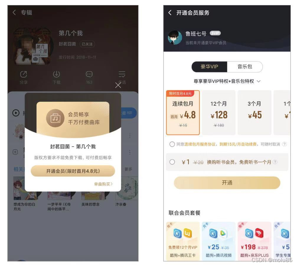 例如,歌手可以在酷狗音乐上发布自己的歌曲,吸引用户收听,然后用户需要通过付费充值会员来下载歌曲,歌手则可以获得盈利,如下图所示。