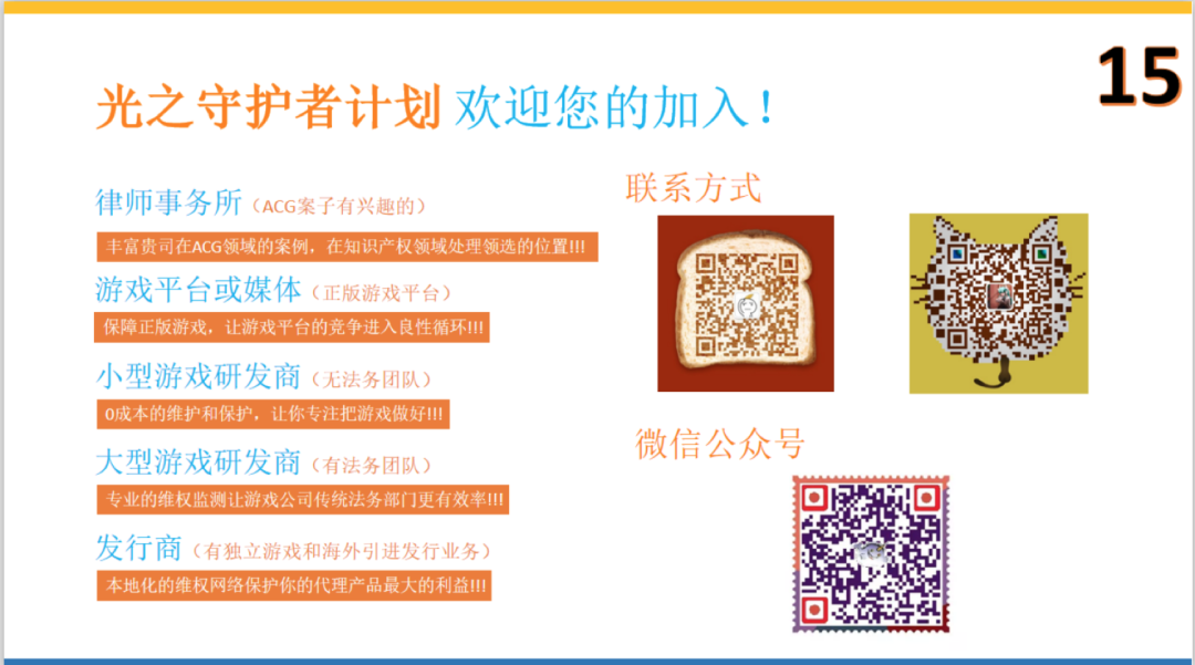 “我们侵权监测。是完全免费的。防患于未然,起到一个保护罩的作用啊,然后。对于什么呢?就是对于这种你可能要成长IP,你现在不知道他可能具备这个潜质。为了以后在这个初级扶持的阶段,我们给你提供这个相关的服务。所以前期这些服务都是不收费,我们的这个收费方式只是从事后,比如说维权。获得赔偿以后,我们进行分成。如果没有赔偿,我们分文不收。”