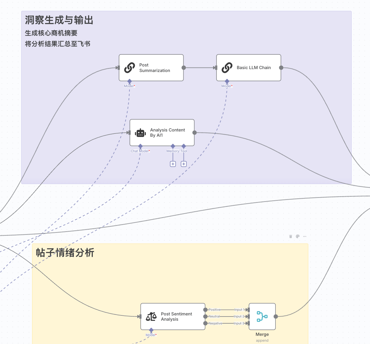 - 路径一:帖子摘要 (Post Summarization -> Basic LLM Chain)