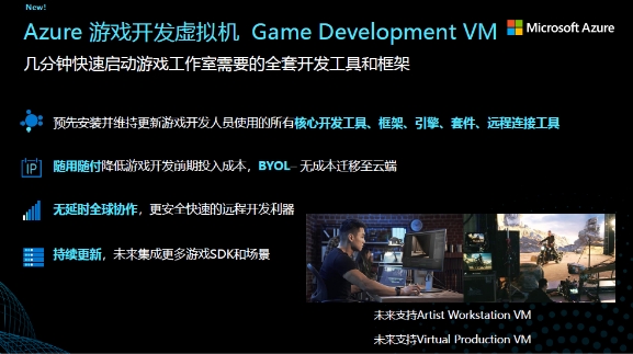 工欲善其事,必先利其器。新游戏需要同步各项任务进度,保证整个项目稳步推进;已经上线的版本还需要根据玩家的反馈及时更新,才能给予玩家最佳体验。并且随着混合工作方式的不断演进,游戏将不会仅仅在工作室中被完成,因此一套能够“背着走”的开发工具包也正在逐渐变成开发者的刚需。在游戏行业积累了20多年经验,加上全球30多家第一方工作室的经验,使微软真正看到了开发者的需求,并为开发者推出了“Azure 游戏开发虚拟机 (Game Development VM)”,和惠及独立游戏开发者的“游戏开发者@ Azure(ID@Azure)”云服务计划。