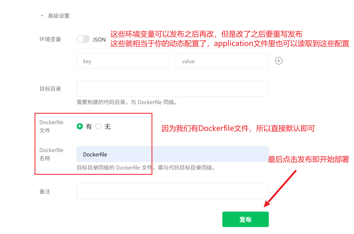 至于如何部署,只需要编写docker镜像,以及打包好源文件即可。