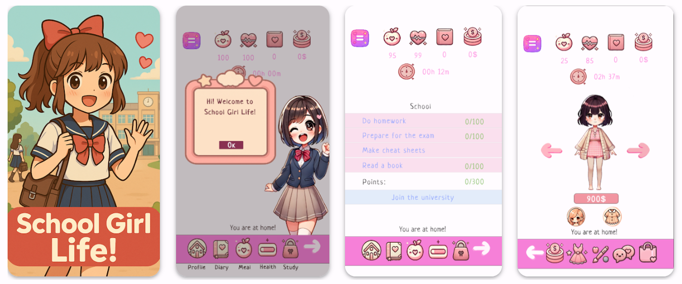 School Girl Life是一款模拟游戏,包含丰富的选择、随机事件、角色属性和轻RPG元素。