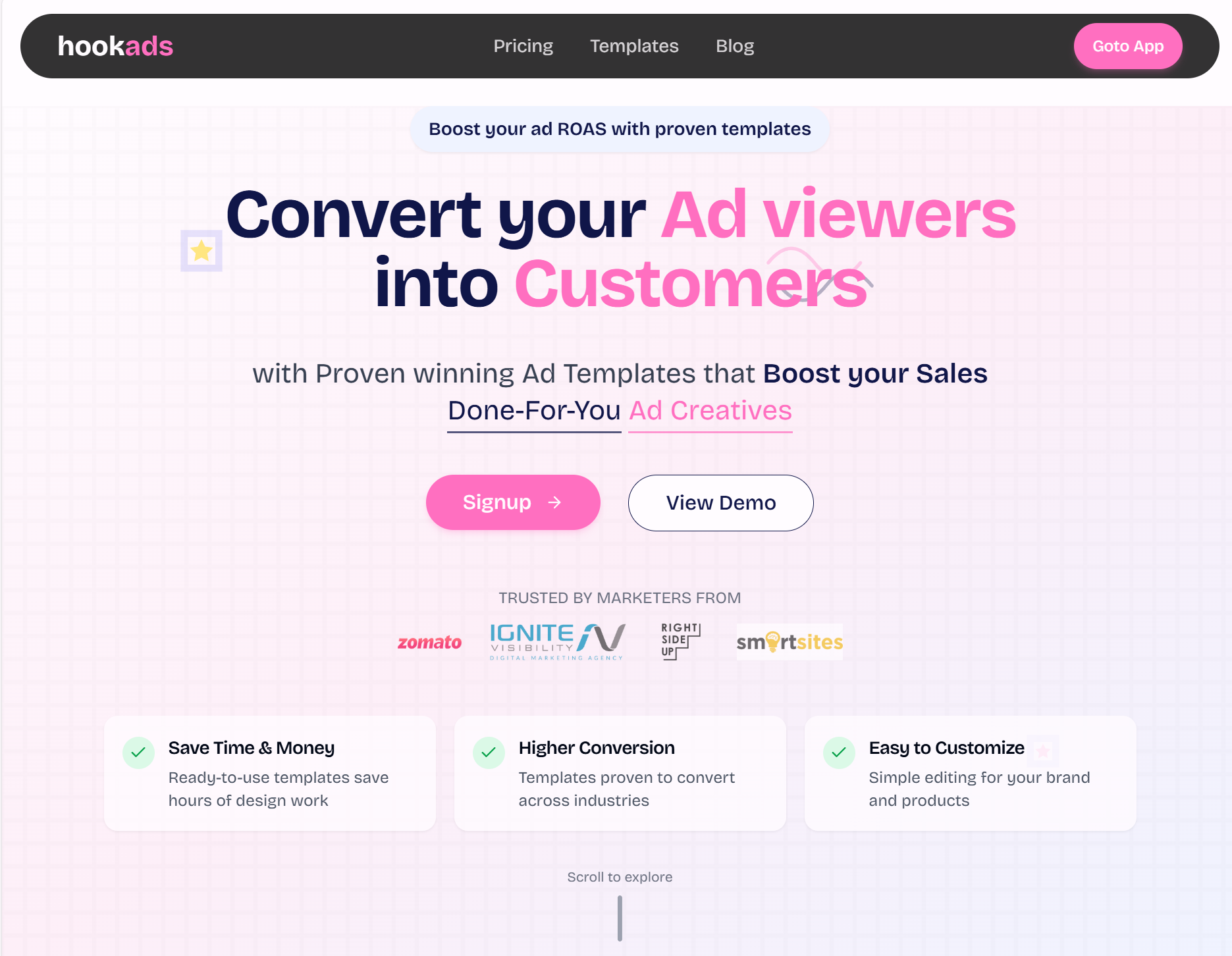 HookAds是一款广告模板工具,提供1500+经验证的广告模板,通过AI优化和Canva编辑,帮助企业节省广告制作时间。
