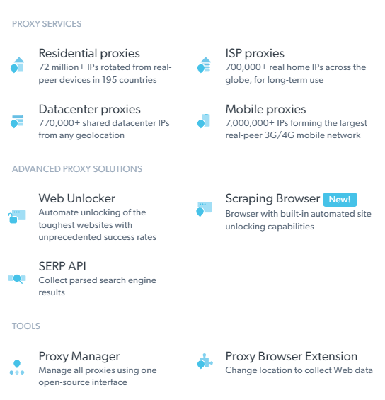 bright data 可能存在一些准入门槛,但你总可以在行业内找到适合于你的“平替”,出于竞争考虑大家提供的服务都类似,比如对我来说我觉得 Geonode 的代理服务可能更适合我。