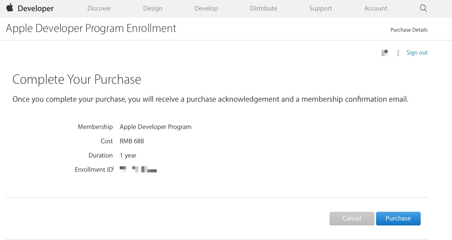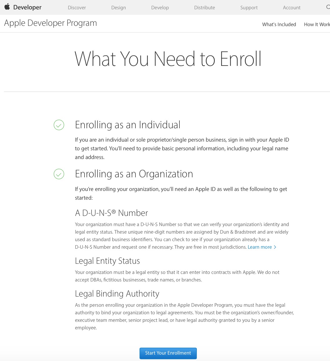 该界面主要用以介绍不同类型的开发者账号的特点,直接点击下方的“Start Your Enrollment”即可。