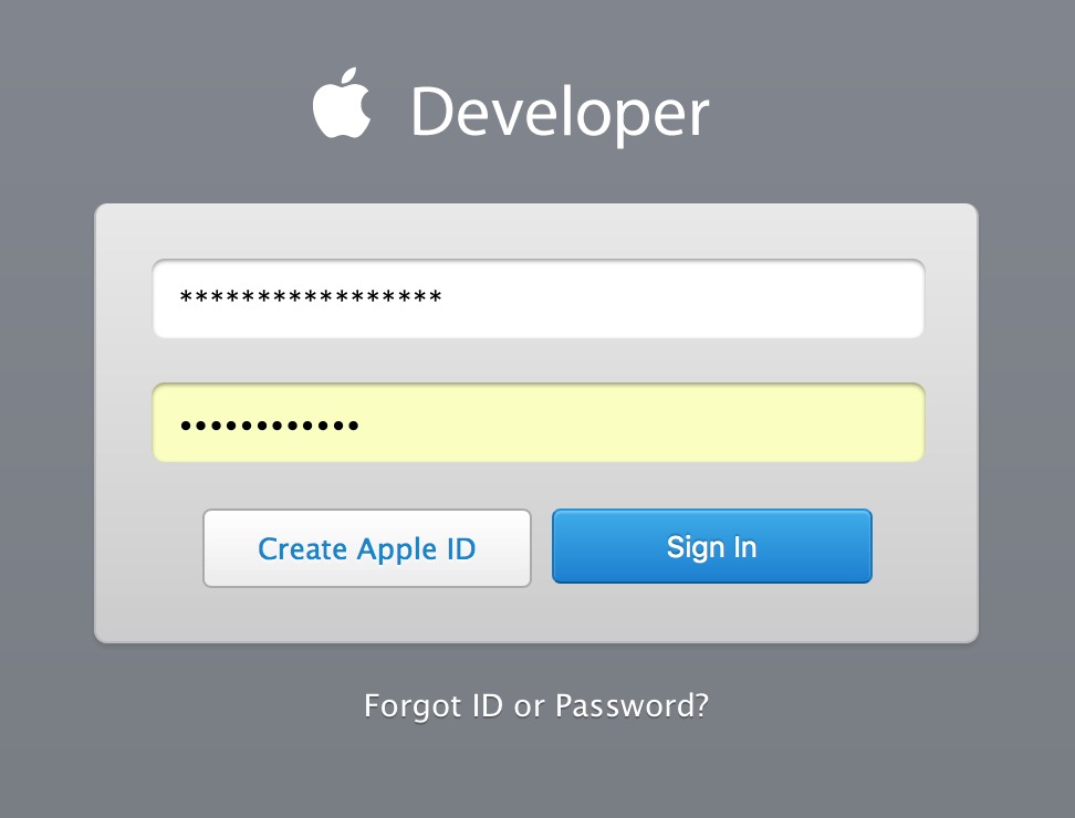 如果没有创建或没有登录的话,系统会弹出苹果开发者网站的登录界面