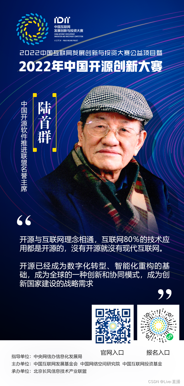 本届大赛是在中央网信办信息化发展局指导下,由中国互联网发展基金会、中国网络空间研究院、中国互联网投资基金联合主办的开源技术竞赛。