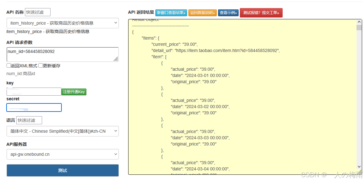 淘宝/天猫历史价格接口调用方法与代码实现