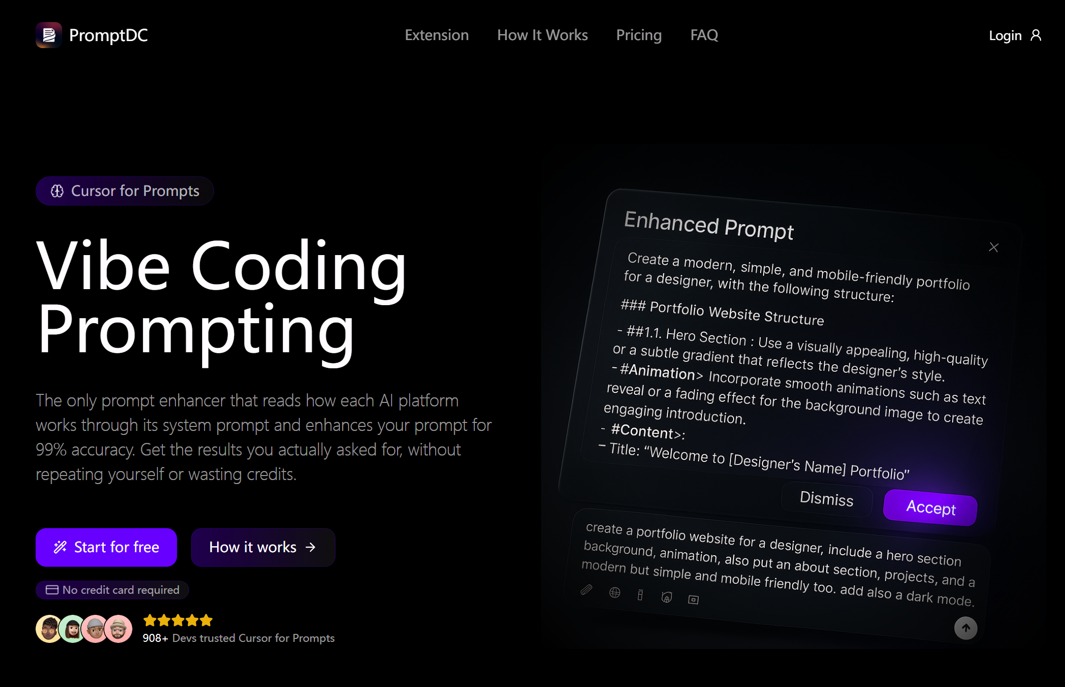 PromptDC是一款提示词优化工具,通过分析AI模型的系统提示来改进用户输入,支持多种平台,并提供保存和组织提示的Markdown库功能。